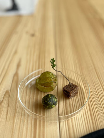 This autumn I was invited to host a tea ceremony at the wonderful new agritourismo hotel 'Chatêau de Raymontpierre' in Vermes, in the french part of Switzerland. On a rainy day, between the green hills, with only the cows from the farm next to it moouing from time to time, we enjoyed a selection of three Oolong teas prepared in a chinese tea ceremony. In addition I served three seasonal bites, composed as a little collection of nature finds you would find on a autumn walk in a forest.